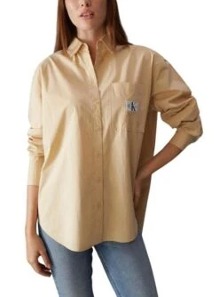 Chemise Calvin Klein. Modèle tissé Label. Couleur camel. Logo sur la poitrine. Poche sur la poitrine.