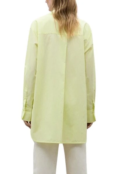 Chemise Ecoalf. Modèle Andrea. Couleur jaune. Fermeture à boutons. Col de chemise. Manches longues. Poche plaquée. Coupe ample.