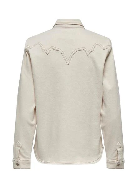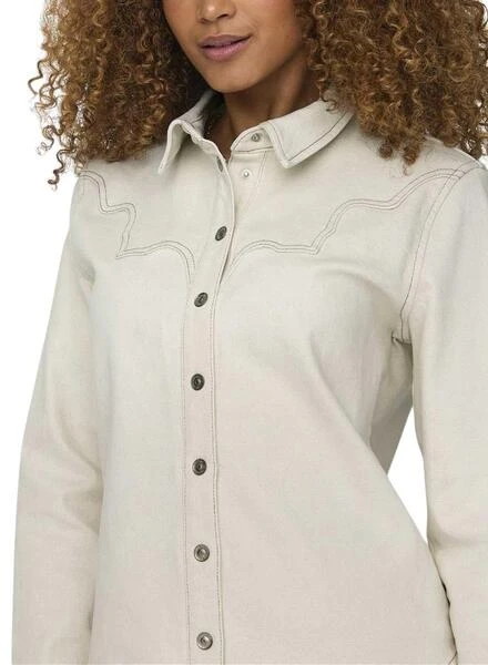 Chemise Only. Modèle Labby. Couleur beige. Fermeture avec des boutons métalliques-pression. Style western. Coutures contrastées. Coupe régulière.