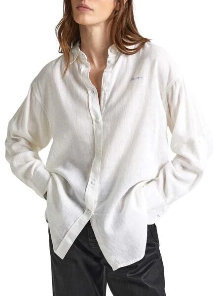 Chemise Pepe Jeans. Modèle Philly. Couleur blanc. Fermeture avec des boutons. Coupe ample. Logo brodé sur la poitrine. Tissu en lin.