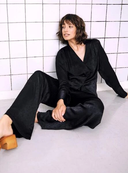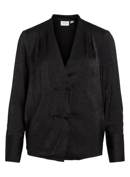 Chemise Vila pour femelle. Fermeture avant avec boutons. Couleur noir. Modèle Vimiel. Col à revers.