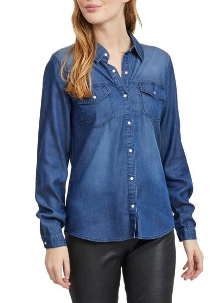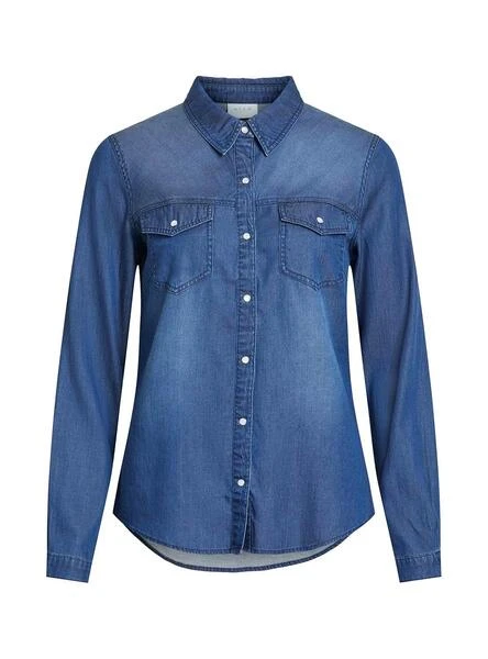 Chemise Vila. Modèle Bista. Denim moyen. Fermeture à bouton automatique. Deux poches à rabat sur la poitrine. Regular fit Ourlet arrondi.
