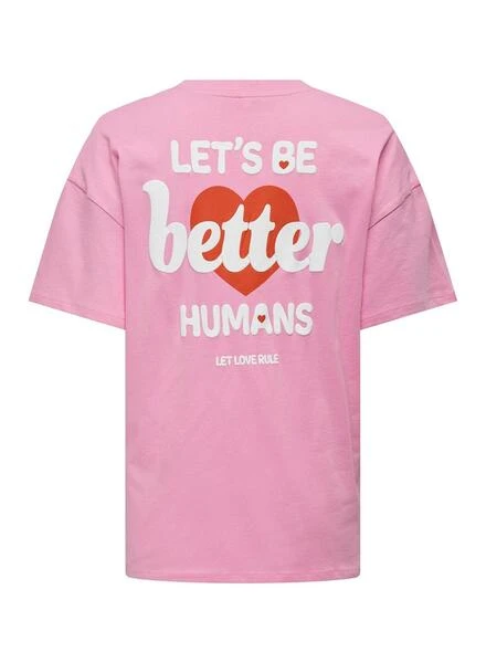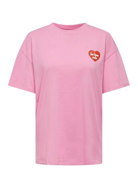 Débardeur Only. Modèle Senna. Couleur rose. Manches courtes. Col rond. Imprimé graphique sur la poitrine et dans le dos. Coupe régulière.