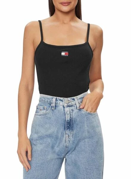 Débardeur Tommy Jeans Badge Rib Strap Noir Femme