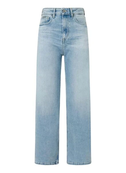 Jeans Pepe Jeans. Modèle Wide Leg. Taille haute. Longueur cheville. Cinq poches. Effet usé. Jambe large. Patch de la marque à la taille.