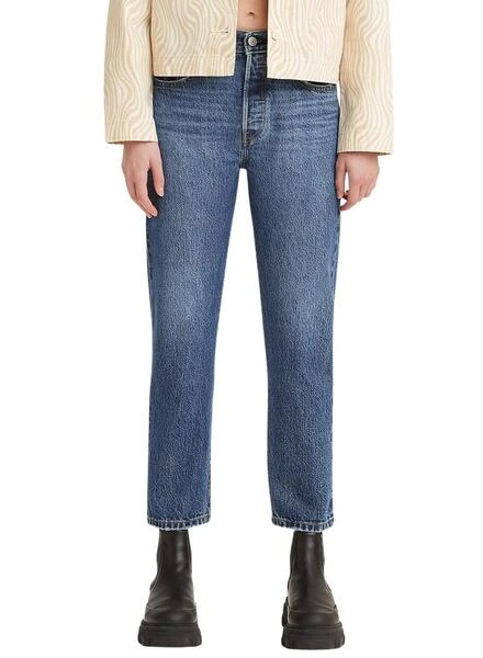 Jean Levis. Modèle 501. Coupe courte. mid rise. Etiquette logo au dos. Bas raccourcis. 5 poches. Passants de ceinture pour .