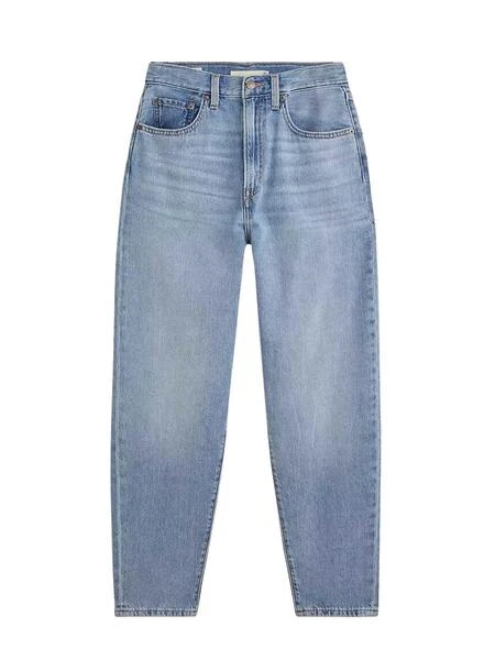 Jeans Levis. Modèle High Loose Taper. Bleu clair. Cinq poches. Fermeture boutonnée et zippée. Étiquette en cuir cousue au dos. Ample.