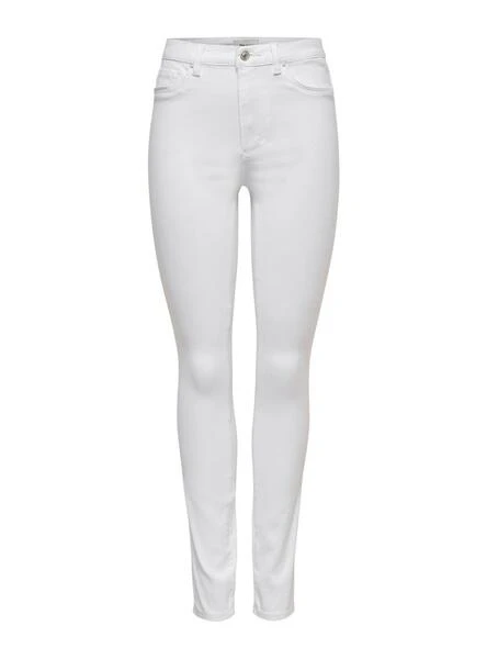 Jeans Only. Modèle Royal. Couleur blanche. high rise. Super skinny. Cinq poches. Fermeture boutonnée et zippée. Longueur de la cheville. Tissu élastique.