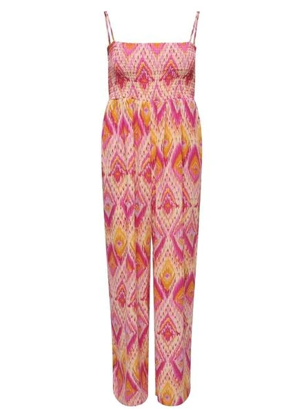 Jumpsuit Only. Modèle Alma Life Poly. Printed. Poitrine en nid d’abeille Ă©lastique. High rise. Fluide Pantalon.