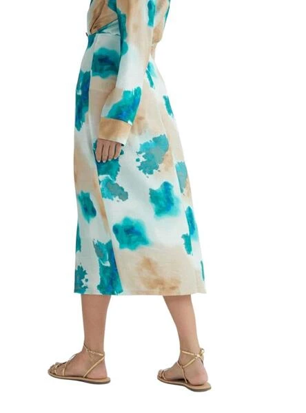 Jupe Vila. Modèle Shiam. Couleur beige. Imprimé sur l’ensemble du vêtement. Fermeture à glissière à l’arrière.
