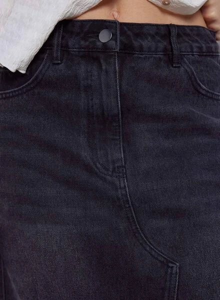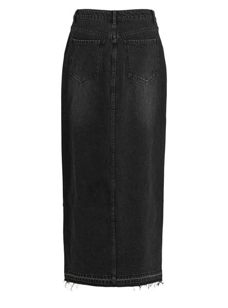 Jupe Vila. Modèle Vinete Maxi. High rise. Ouverture en bas. Basse effilochée. Côté Poches. Fermeture boutonnée et zippée. Passants de ceinture pour.
