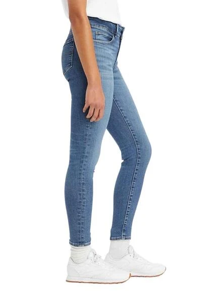 Pantalon Jeans Levis. Modèle 711. Couleur bleu. Taille moyenne. Ajustement Skinny. 5 poches. Jambe étroite. Fermeture avec deux boutons et fermeture éclair. Le mannequin porte une taille 27.