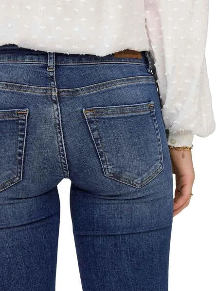Pantalon jean Only. Modèle Blush Évasé. Couleur bleu jean. Fermeture éclair et bouton. Taille basse. Passants de ceinture pour. Coupe évasée. Coupe évasée. Serré au niveau des hanches et des cuisses.