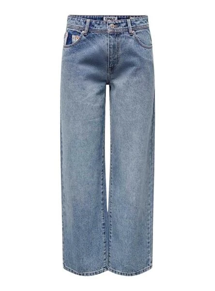 Pantalon Only. Modèle Collette. Couleur bleue. 5 poches. Fermeture à bouton. Braguette éclair. Patch à l’arrière. Coupe décontractée.