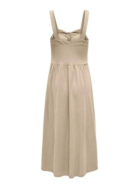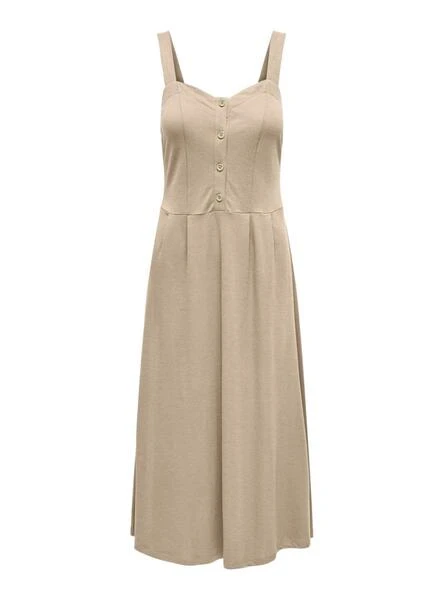 Robe Only. Avec bretelles larges. Tissu doux. Boutons sur la poitrine. Coupe à la taille. Longueur midi. Coupe régulière.