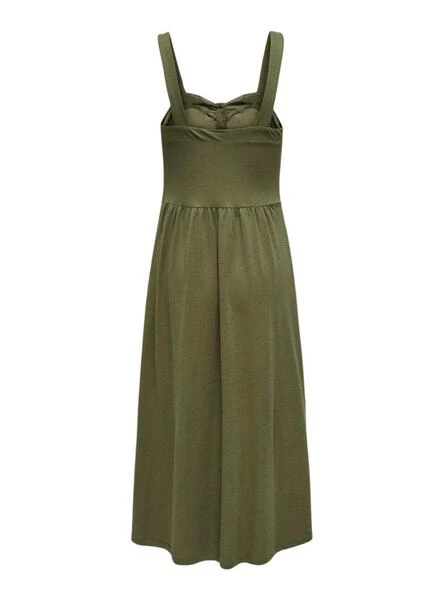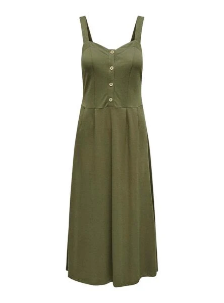 Robe uniquement. Couleur vert. Bretelles. Tissu doux. Boutons sur la poitrine. Taille cintrée.