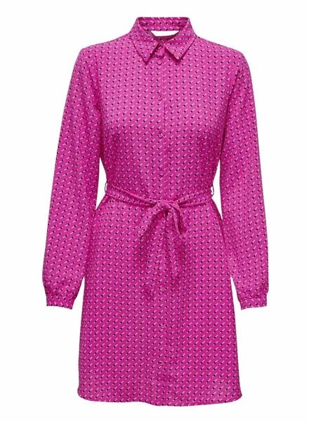 Robe Only. Modèle Noami. Printed en rose. Manche longue. Fermeture boutonnée. Avec ceinture. Col de chemise. modèle court. tissu léger
