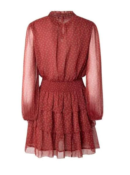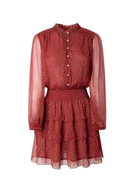 Robe Pepe Jeans. mini-conception Nid d’abeille avec élastique à la taille. Bas avec vol. Col rond avec volants. Manche soufflé. Fermeture avant avec boutons. Printed fleuri. Couleur rouge. Poignées avec élastique.