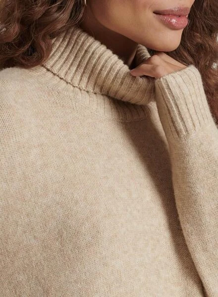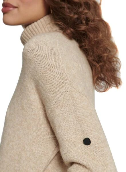 Robe Superdry. Beige. Tissu marbré. Col roulé. Deux poches latérales. Finitions côtelées.