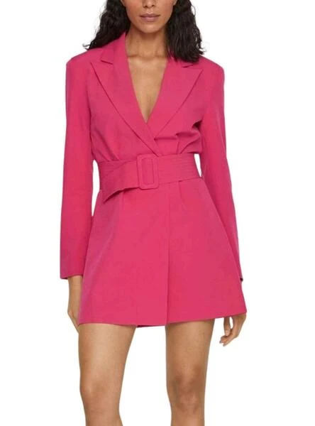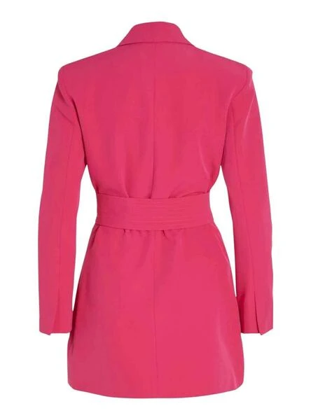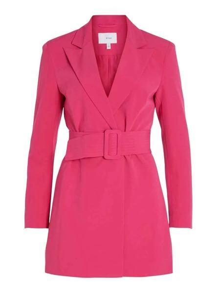 Robe Vila. Modèle Géry. Couleur rose. Manche longue. Fermeture ceinture et bouton. Style blazer. coupe régulière.