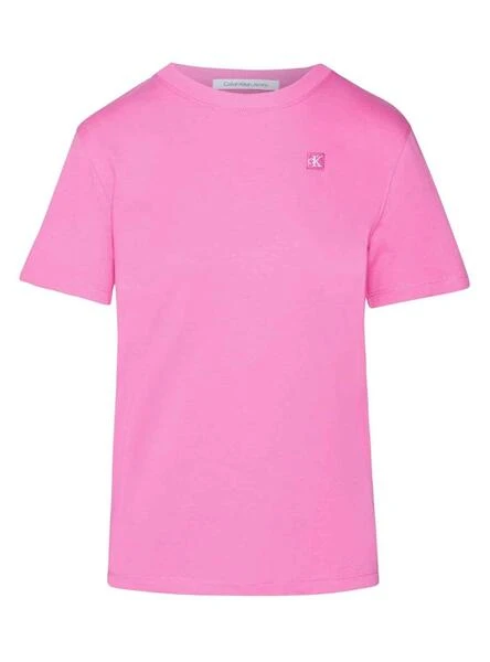 T-Shirt Calvin Klein Jeans. Modèle Embro Badge. Couleur rose. Col rond. Manche court. Regular fit Logo brodé sur la poitrine.