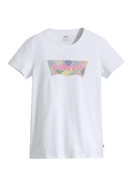 T-Shirt Levis. Modèle Quilt. Couleur blanc. Manche court. Col rond. Logo de la marque estampillée. coupe régulière.