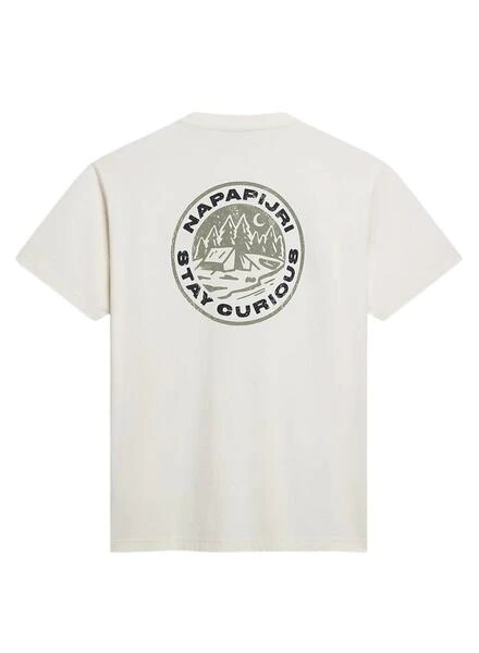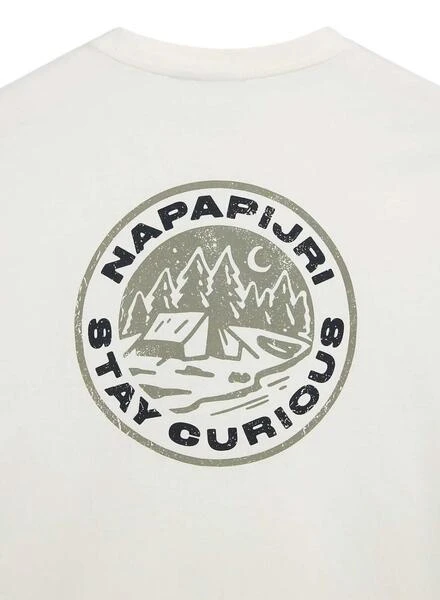 T-shirt Napapijri. Modèle Kotcho. Couleur blanche. Impression graphique dans le dos. Manches courtes. Épaules tombantes. Logo sur la poitrine. Le modèle porte la taille M. Tissu en coton doux.
