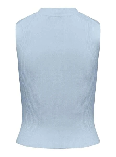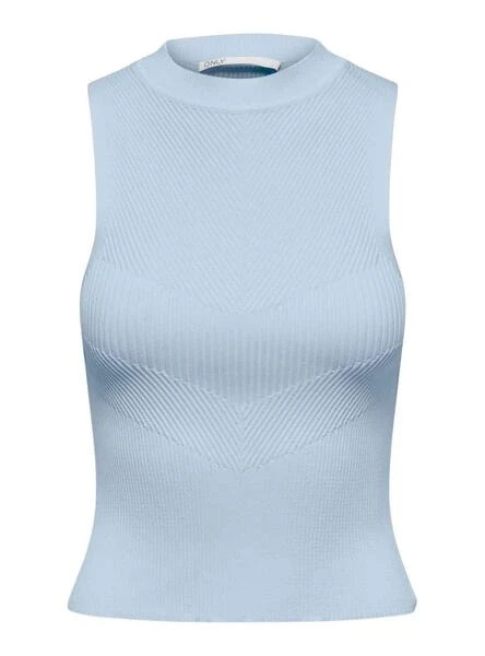 T-Shirt Only. Modèle Bianka. Couleur bleu. Sans manches. Col rond. Tricot. Coupe slim.