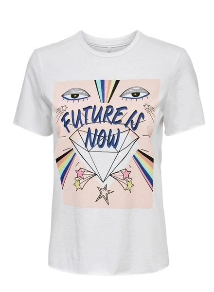 T-Shirt Only. Imprimé graphique sur la poitrine. Future is now message sur la poitrine. Col rond. couleur blanche. Manche courte.