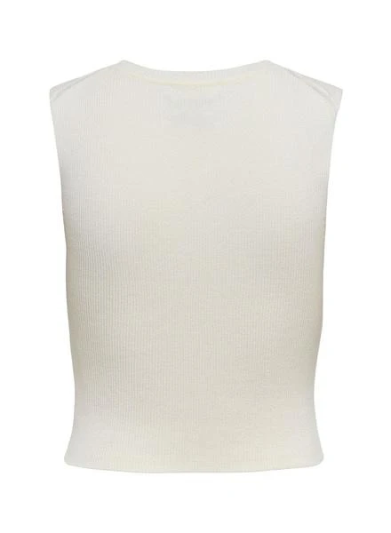 T-Shirt Only. Modèle Majli. Couleur blanche. Sans manches. Col rond côtelé. Tissu en maille côtelée extensible.