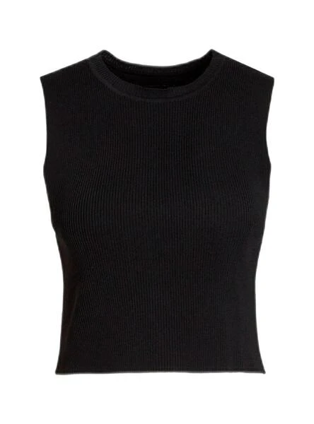 T-Shirt Only. Modèle Majli. Couleur blanche. Sans manches. Col rond côtelé. Tissu en maille côtelée extensible. Serré.