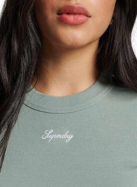 T-Shirt Superdry Rib Slim Vert Pour Femme