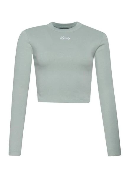 Top ajusté Superdry. Modèle Rib. Manche longue. Col rond. Logo brodé sur la poitrine. Ajusté au corps. Coupé au nombril. Détails distinctifs. Le mannequin porte la taille S.