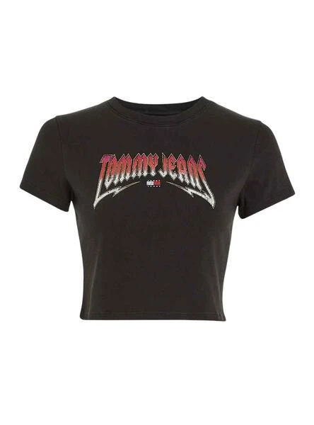 T-Shirt Tommy Jeans Crop Slim Rock Noire Femme