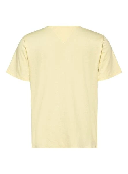 T-Shirt Tommy Jeans. Modèle Serif. Couleur jaune. Col rond. Manche court. Broderie multicolore sur la poitrine. Logo de la marque brodé sur la manche.
