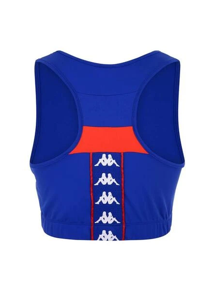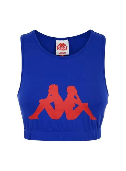 Top Kappa Modèle Brada. Couleur bleue Sans manches Crop haut. Logo avec sur la poitrine. Bande décorative de la marque au dos. Coupe ajusté.