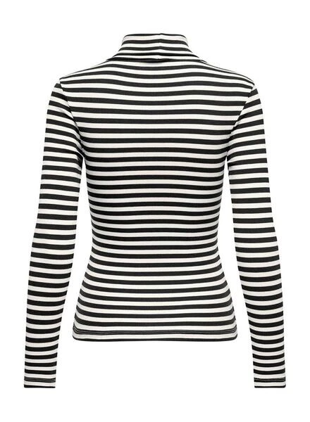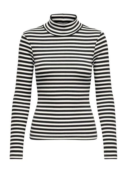 Top Only. Modèle Elina. Couleur noire. À rayures. Manches longues. Col haut. Coupe régulière.