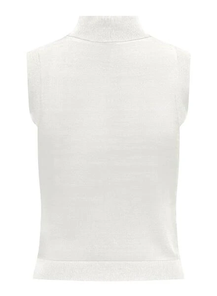Top Only . Modèle Lill. Couleur blanche. Tricot. Rayures imprimées. Col montant. Sans manches. Coupe régulière.