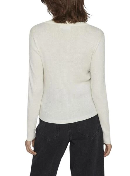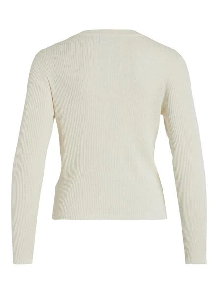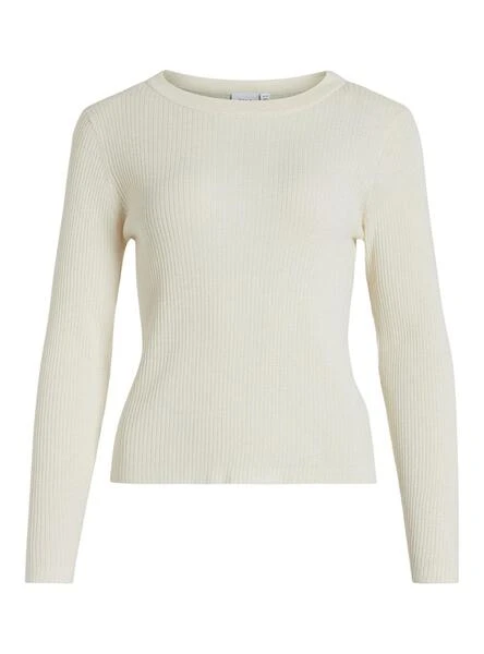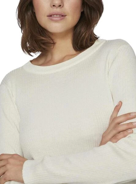 Top Vila. Modèle Bella. Couleur beige. Manches longues. Col rond. Tricot. Coupe régulière.